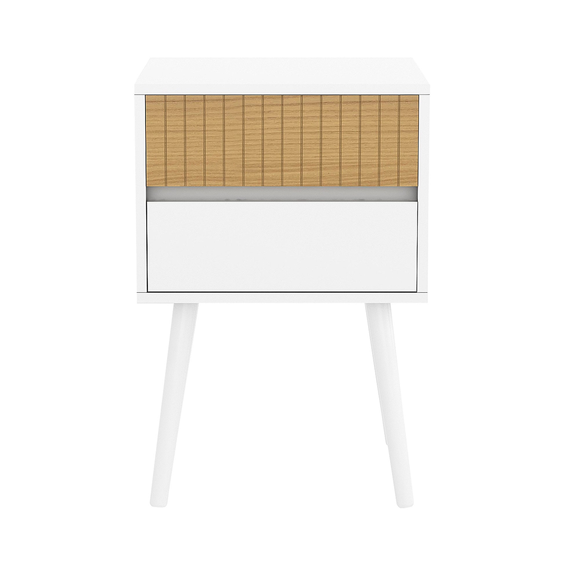 Sarantino Clio Bedside Table Night Stand - White/natural